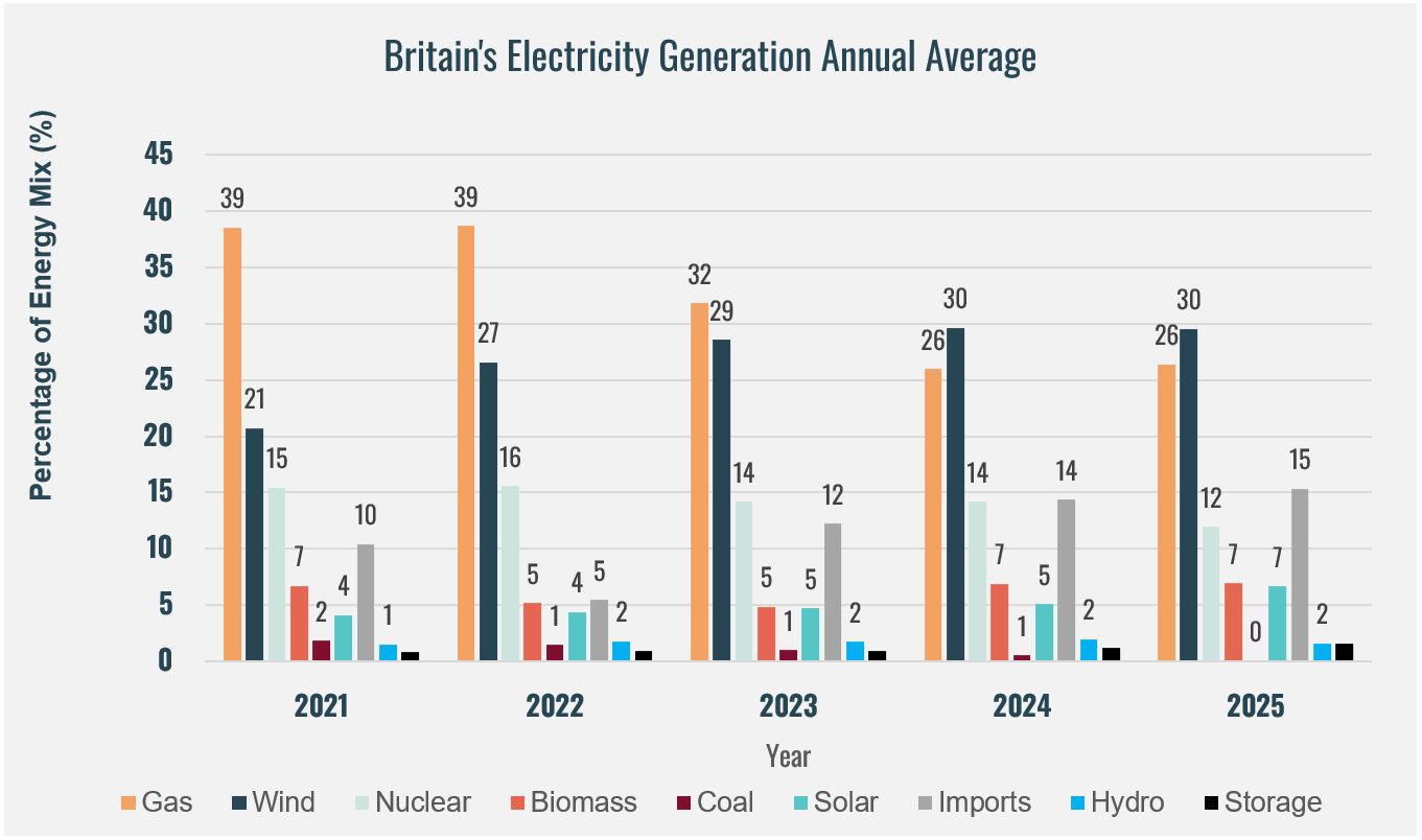 2025 demonstrates that developments of renewables in Britain's electricity mix are moving in the right direction, with a clear shift from prior years. Maintaining this momentum requires continued deployment of renewables, faster rollout of flexibility solutions such as storage and demand-side response, and careful management of our import reliance. Together, these actions will be critical to securing a resilient, affordable, and net-zero-aligned electricity system that delivers lasting value for the UK economy and its energy consumers.